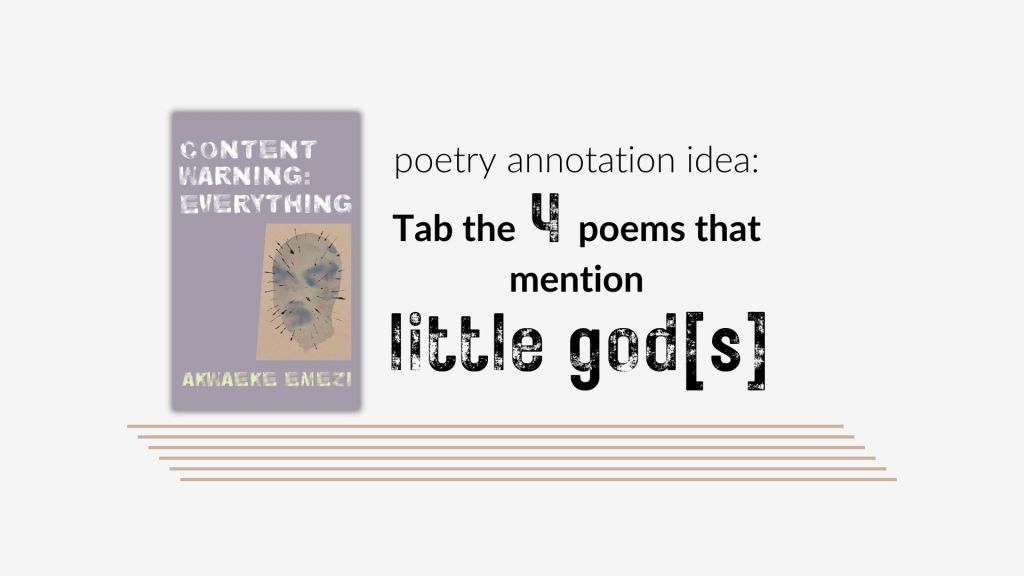 Tabbing the four poems that mention “little god[s]” is an easy, satisfying annotation project, requiring only four tabs. These are the titles of the poems to mark: