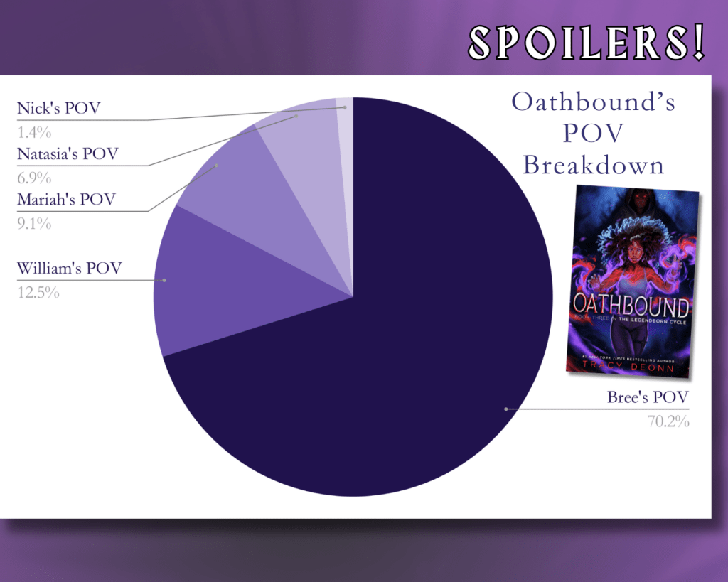 Bree’s POV comprises 70% of Oathbound, so her voice is still very front and center. Here’s the full breakdown: