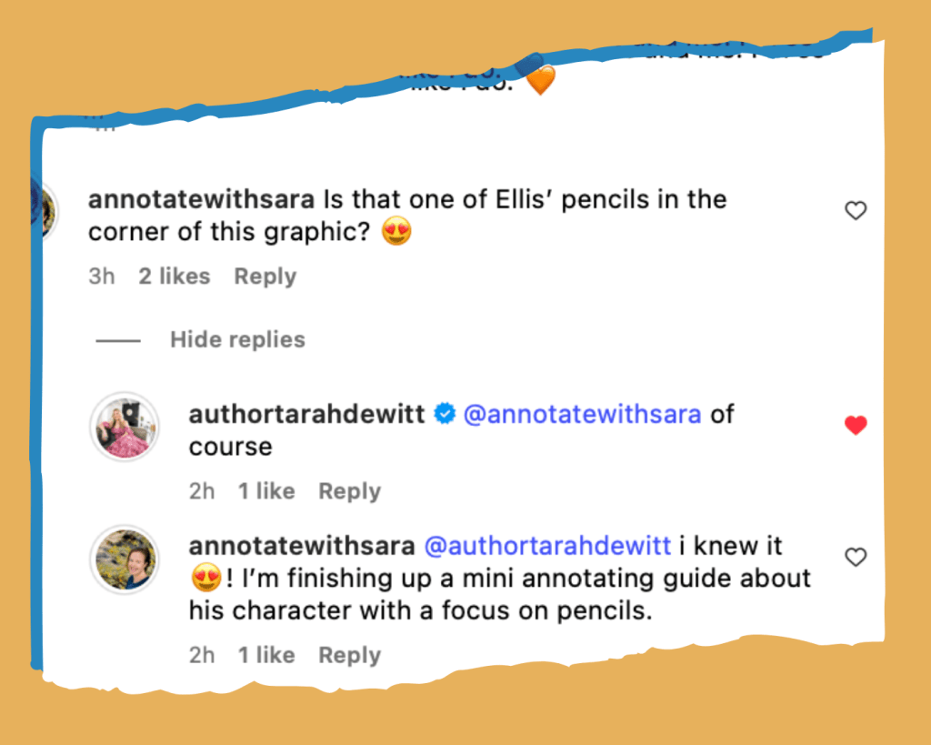 One of Ellis’ pencils made it into Tarah DeWitt’s Instagram post today.